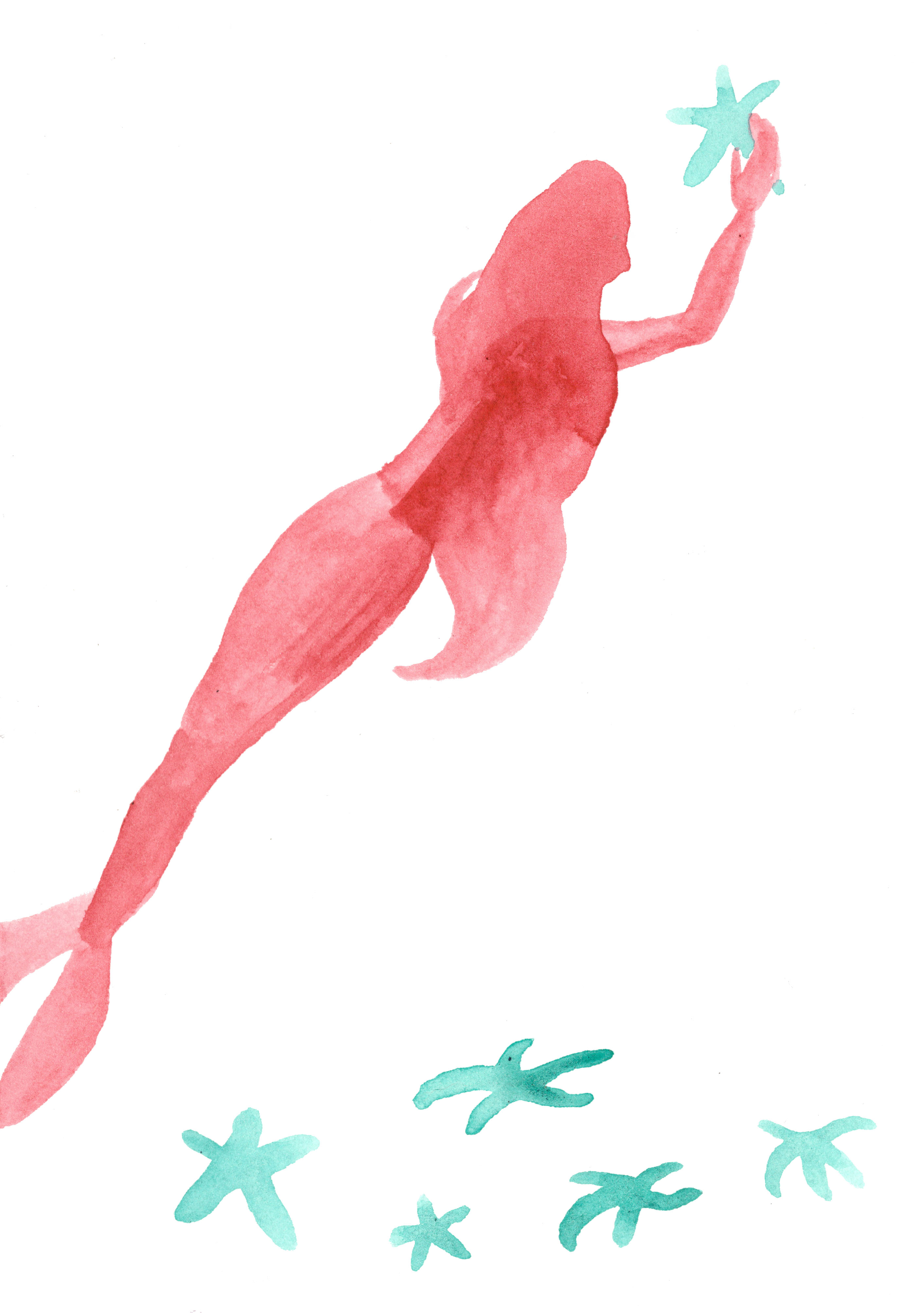 Mermaid red. Watercolor on paper.